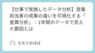 ※本記事は実際の業務で行ったデータ分析を、守秘義務に配慮して抽象化したものです。なぜこの分析を行ったのか(背景)介護業界の営業は、訪問件数・関係構築・契約維持など複数の要素が絡むため、担当者ごとに成果の差が大きくなりやすい。実際、私の職場で...
